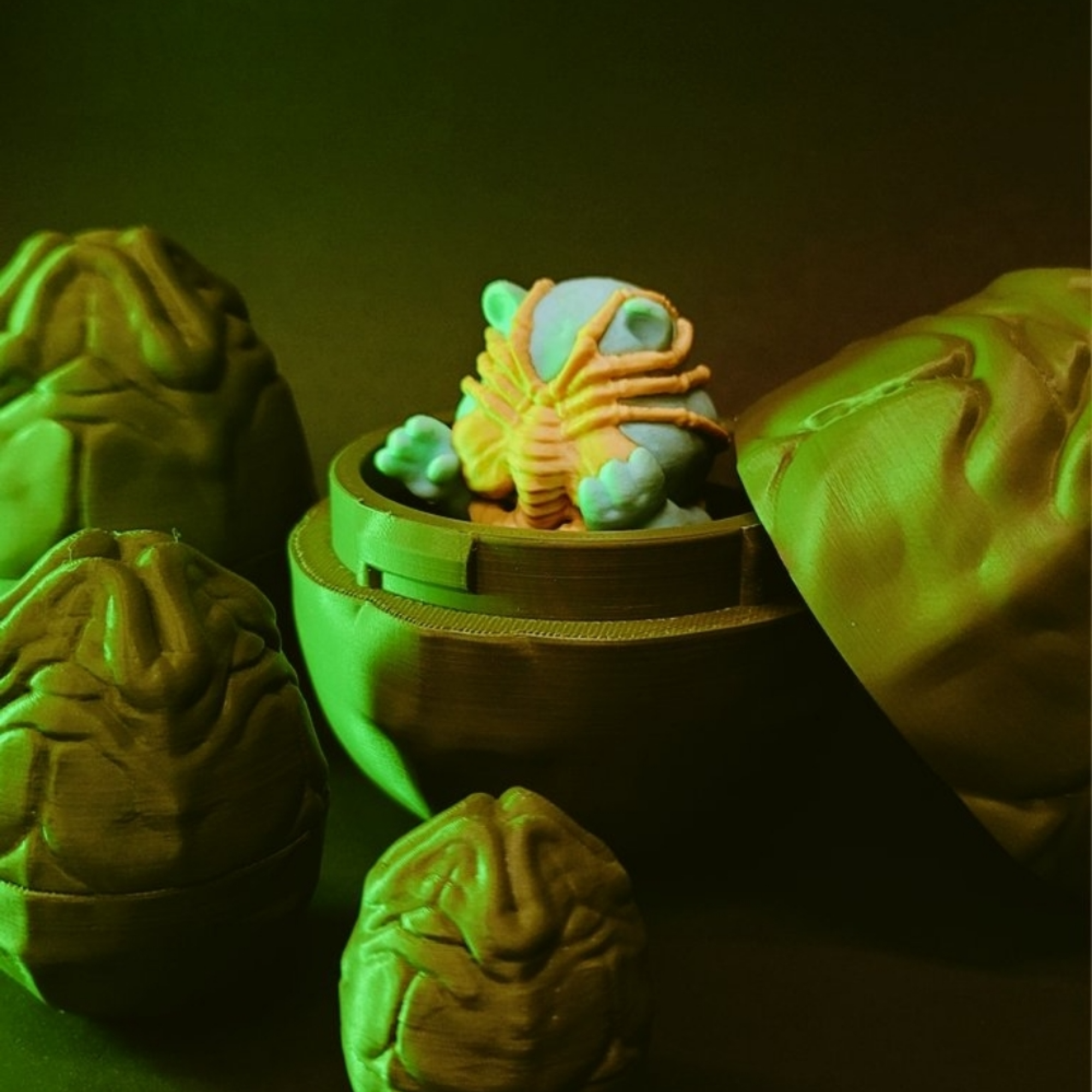The Alien Easter Egg adds a creative and unusual twist to traditional Easter décor. You can print it in multiple colors, add metallic or glow-in-the-dark filaments, or display it alongside other sci-fi collectibles. Its unique design makes it a perfect conversation starter for fans of Alien and Halloween-style Easter décor.