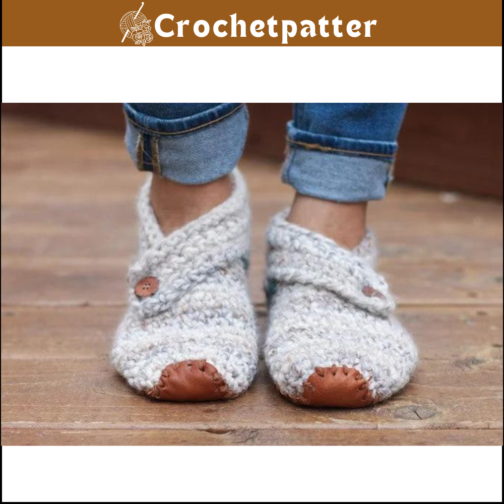 Beginner Crochet Pattern: Slippers with Leather Soles | Warm House Shoes PDF