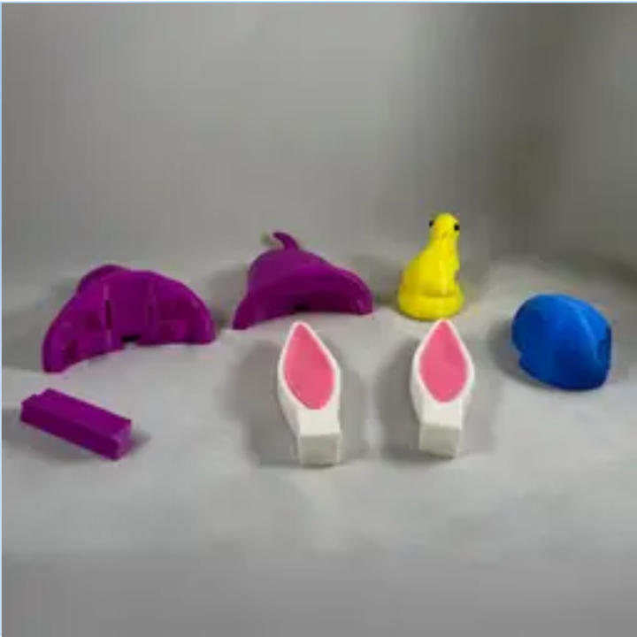 Includes bunny ears, egg, and peep chick STL files