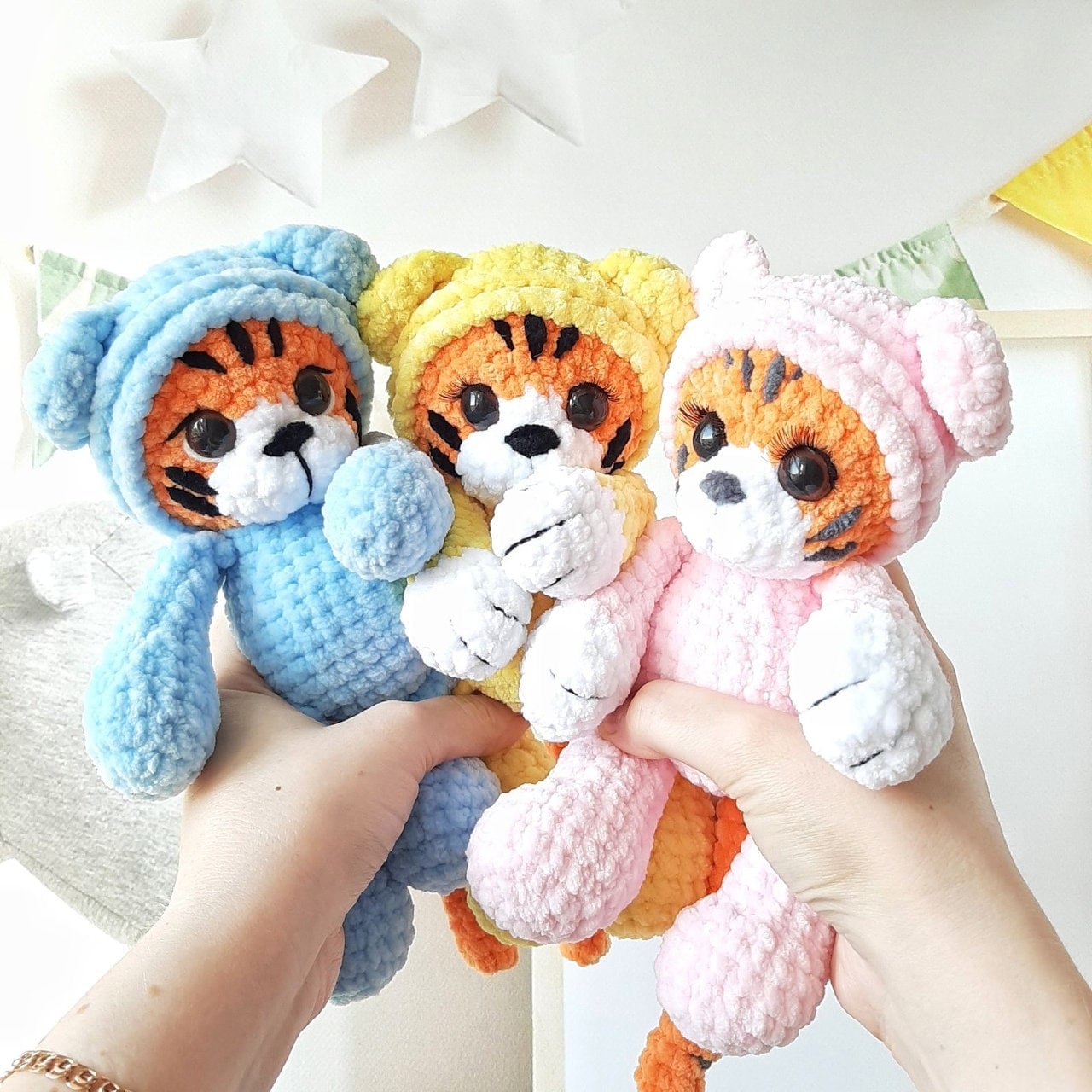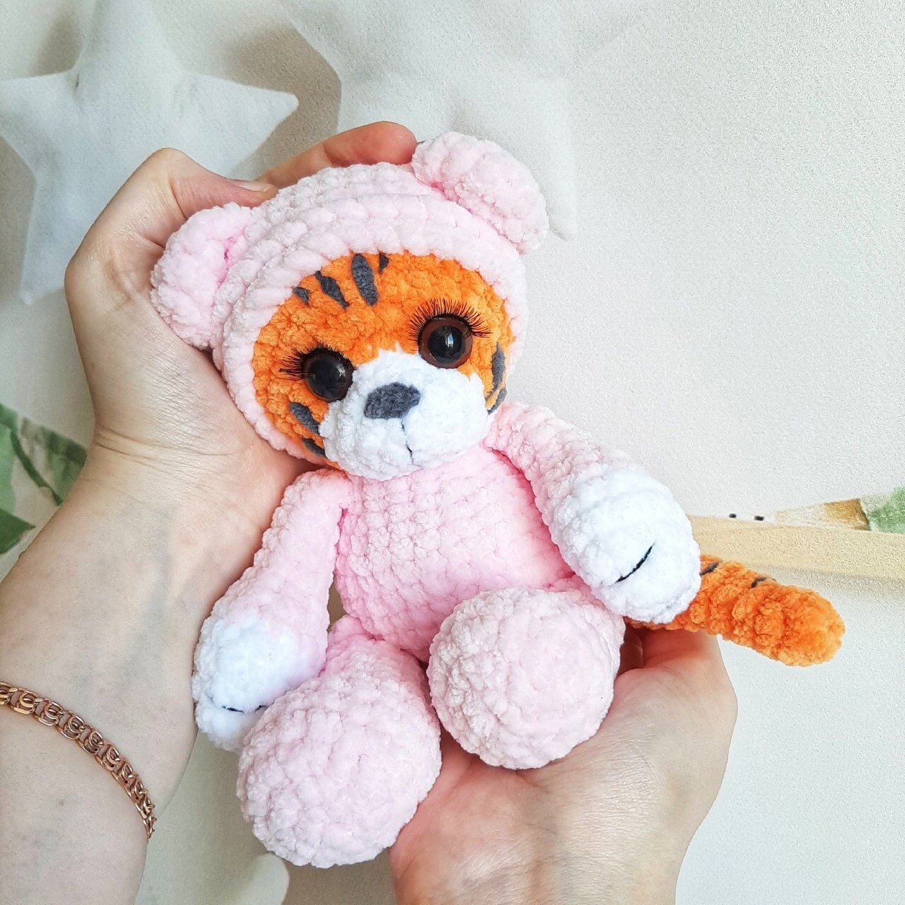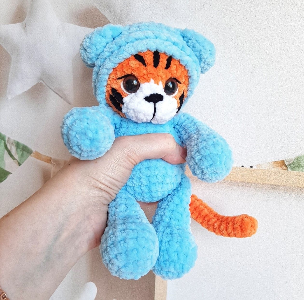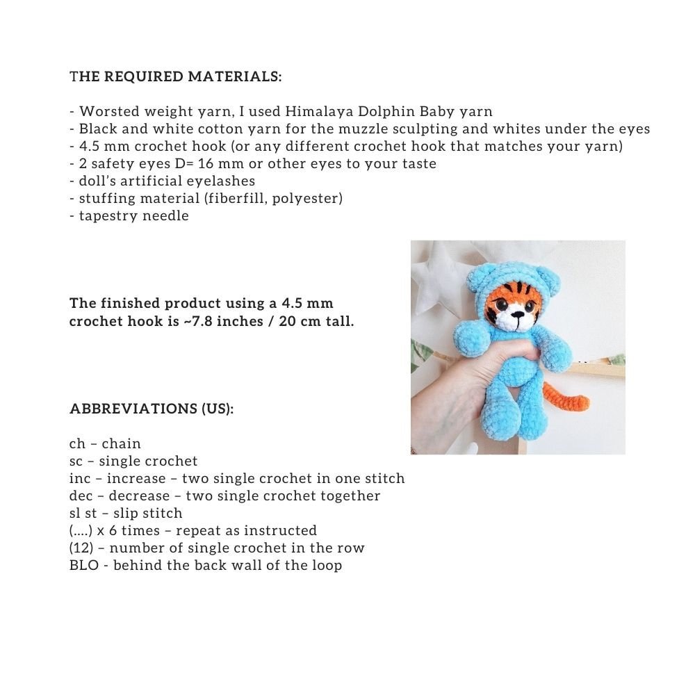 Start making your delightful tiger in pyjamas today with our comprehensive PDF pattern. For more patterns and updates, visit our Facebook page and explore our website.