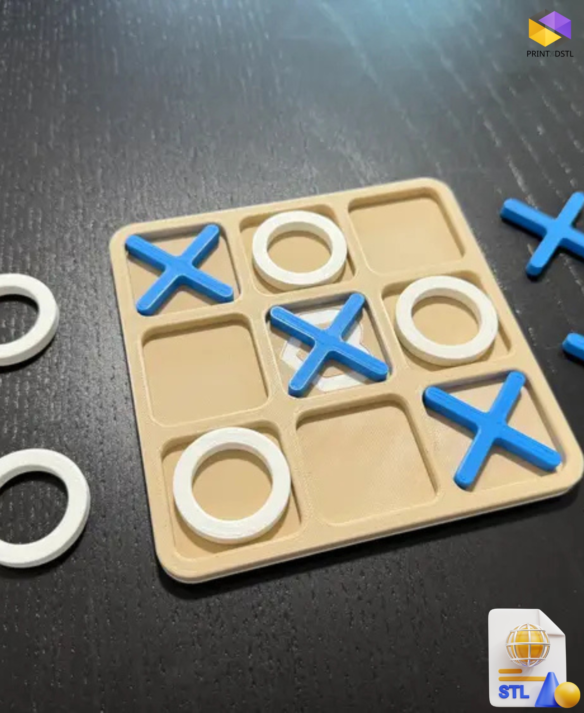 Thanks to the STL file, you can print custom X and O pieces to suit your preferences. Feel free to print them in various colors, materials, or styles, adding your personal touch. For example, consider using different colors or decorative elements to make the game even more unique. - Easy-to-Print