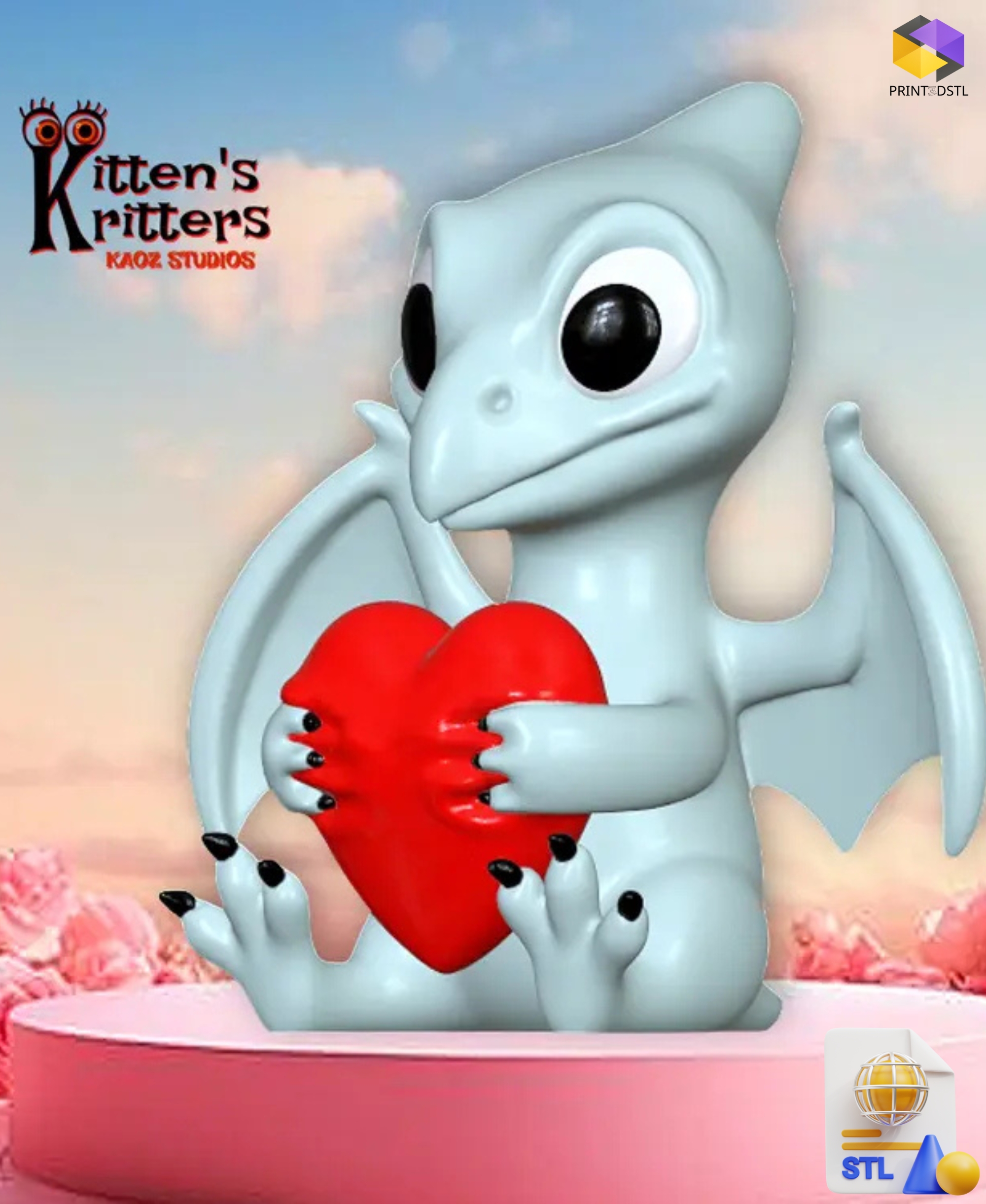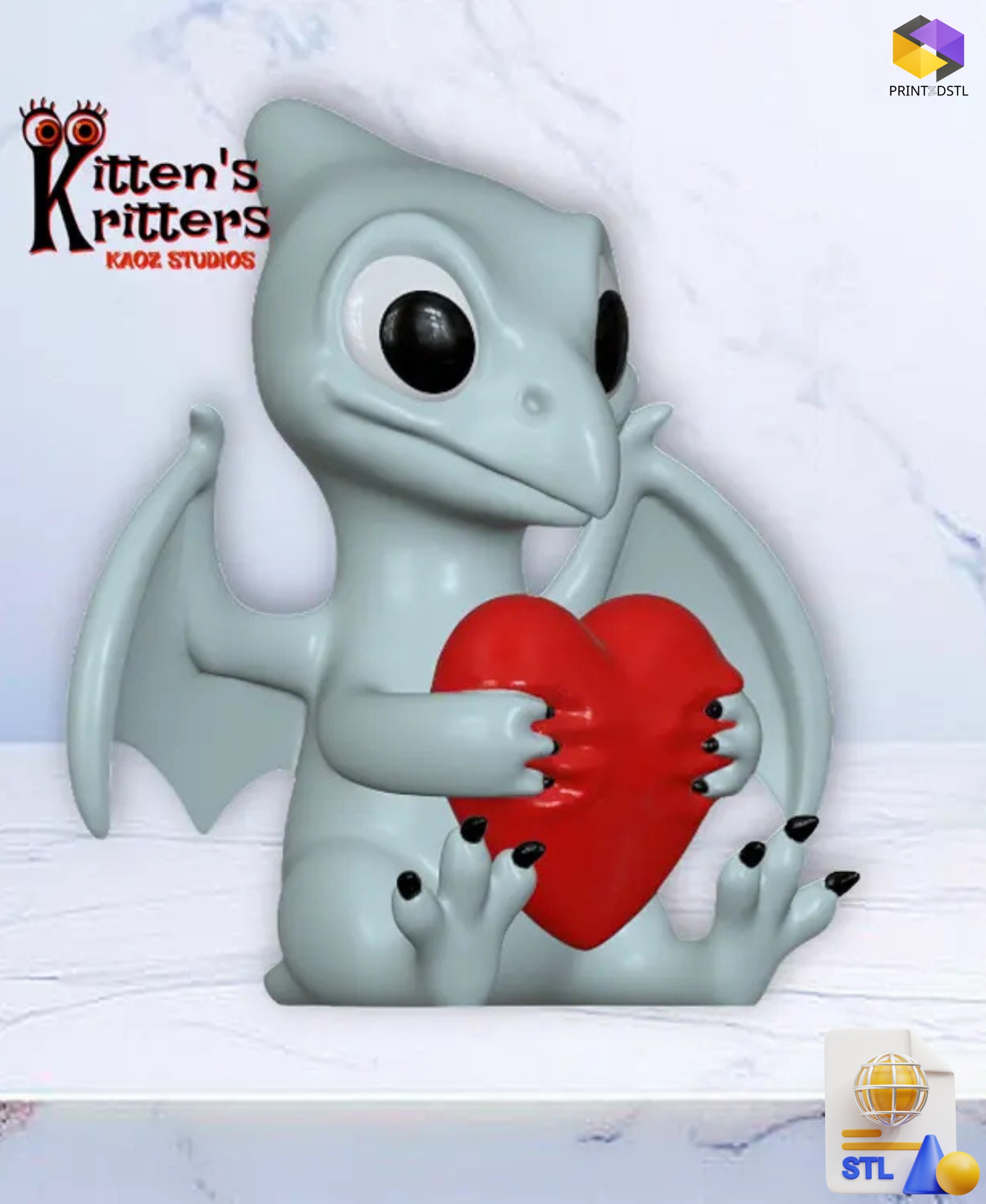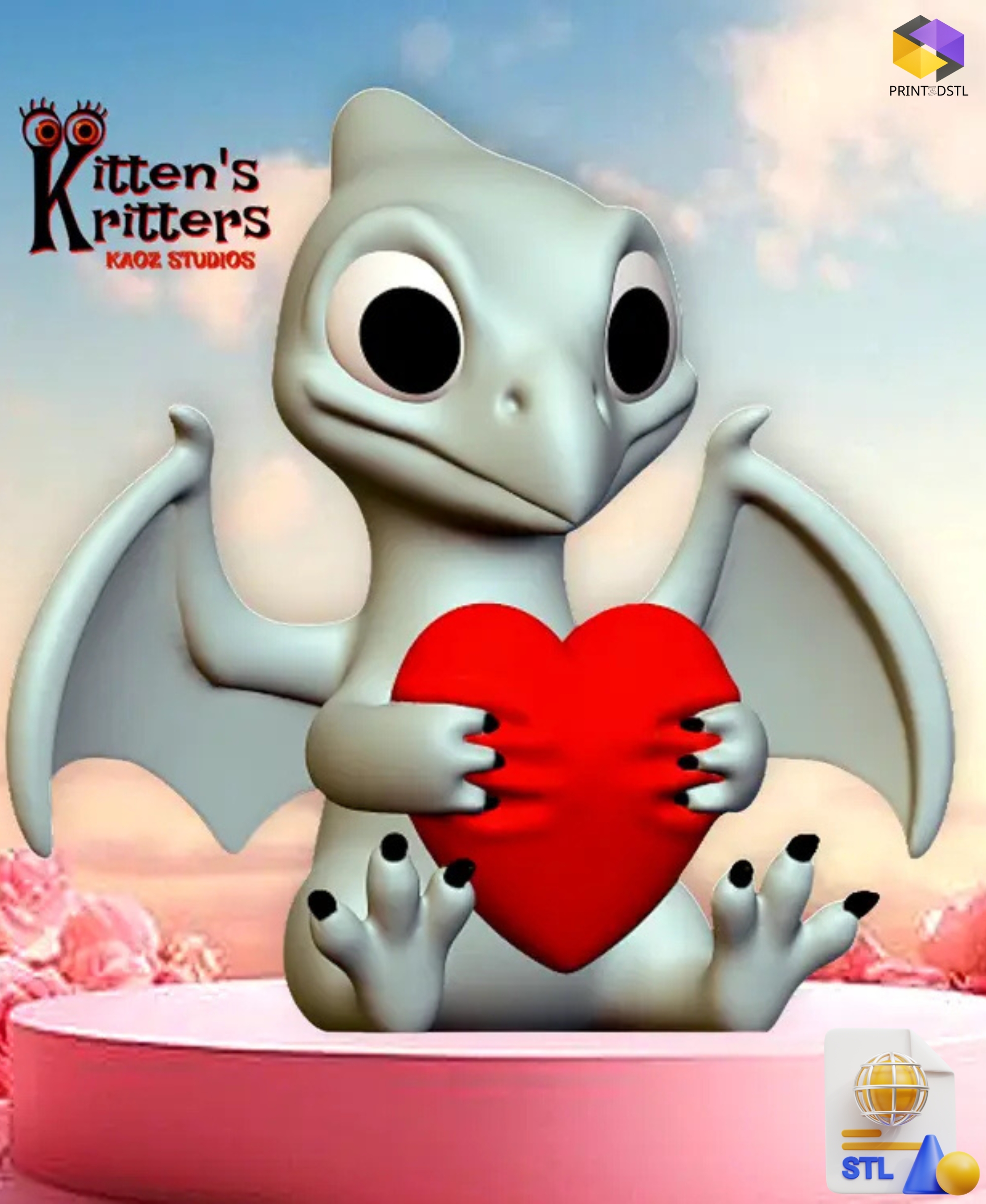 Valentine’s Day Pteranodon Hugging Heart Figurine STL File – A Love-Filled Prehistoric Hug